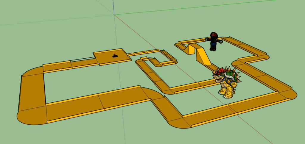 De bedoeling van deze opdracht was dat je een racebaan ontwierp in SketchUp. Dit deed je in tweetallen,